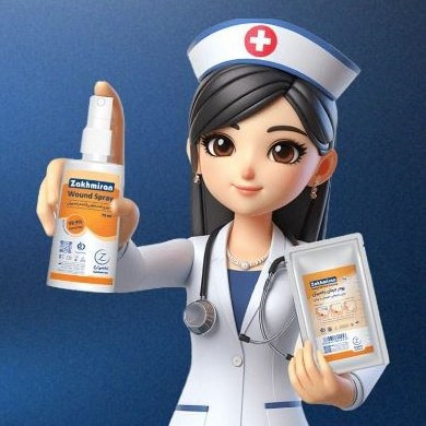 اسپری ضدعفونی کننده زخمیران را درتمامی بخشهای بستر زخم اسپری کنید.