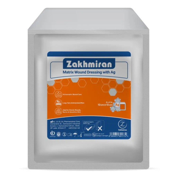 از یک پانسمان ثانویه استریل مناسب، مانند سوپر جاذب یا فوم جهت جذب اگزودا بر روی ماتریکس نقره زخمیران استفاده نمایید.