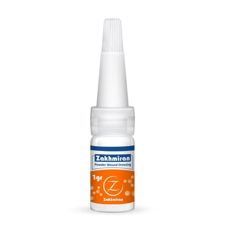 پودر را مستقیم روی بستر زخم ریخته تا لایه نازکی از پودر، زخم و لبههای زخم را به صورت کامل پوشش دهد.